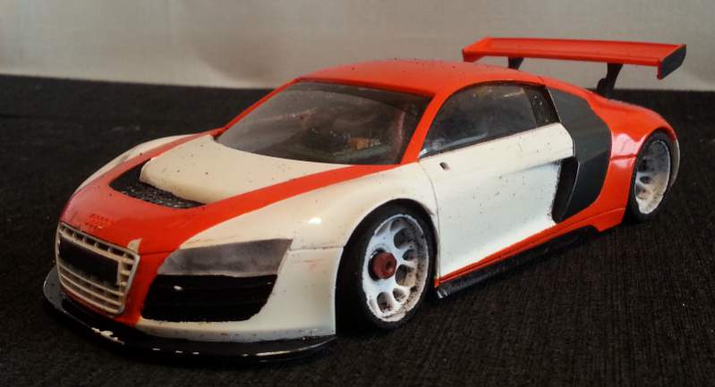 Espen fikk også endelig prøvd sin nybygde MR-03. Denne gangen ble det smal bil som velta så plasten spruta. Godt døra ikke stod oppe for da hadde den nok forsvunnet ned en etasje og rett i betongen. Det snakkes nå om å montere målebånd på døra for å notere høyderekorder :D